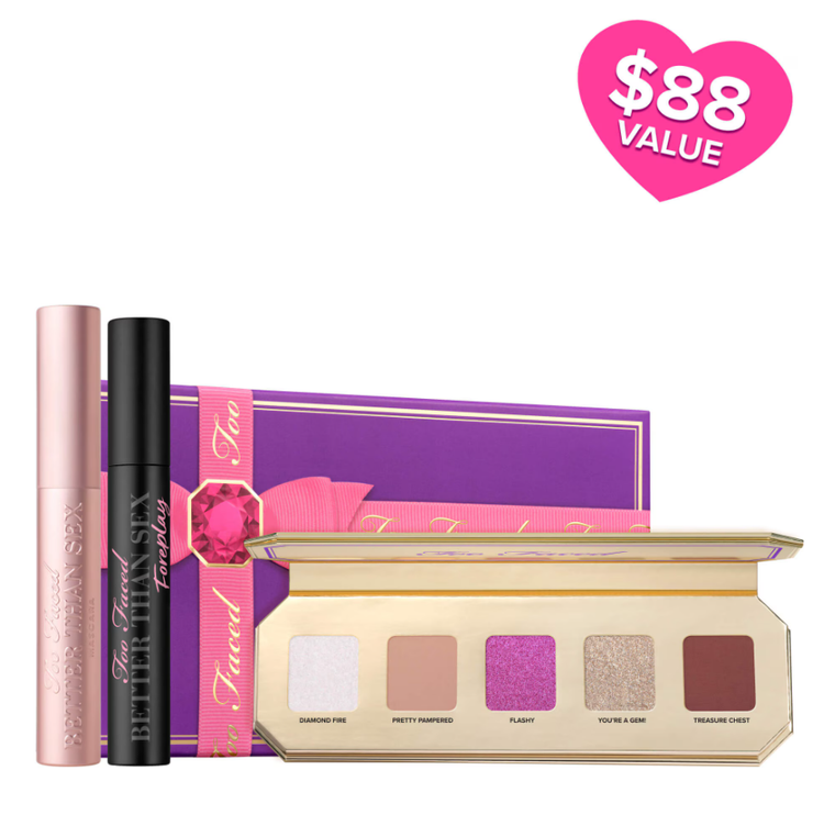 این محصول انحصاری شامل یک پالت سایه خیره کننده از سایه های مات و درخشان و متالیک و پرایمر مژه better than sex foreplay و ریمل نمادین better than sex برای مژه هایی شگفت انگیز است که شما از آن لذت خواهید برد.این یک نگاه کامل به چشم در یک بسته زیبا است!