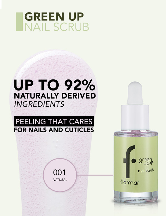 Flormar Green Up Nail Scrub، یک ژل اسکراب گیاهی ویژه ناخن و کوتیکول است که علاوهبر حذف سلولهای مرده، با ترکیبی از عصارههای گیاهی و گلیسیرین، ناخنها و پوست اطرافشان را به خوبی آبرسانی میکند. این اسکراب اولین قدم مؤثر در روتین مانیکور حرفهای به شمار میرود.