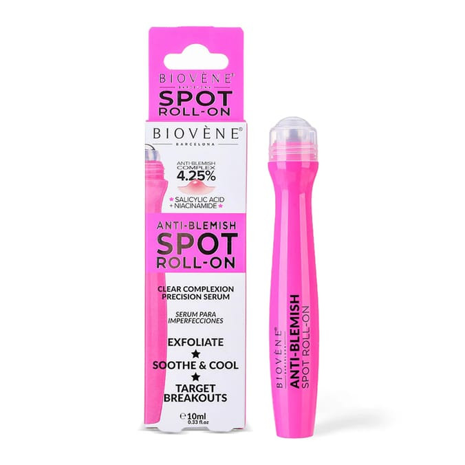سرم ضد جوش Biovene Spot Roll-On محصولی از برند اسپانیایی بیوون (Biovene Barcelona) است که با ترکیبی قوی از اسید سالیسیلیک (Salicylic Acid) و نیاسینامید (Niacinamide) طراحی شده تا به سرعت التهابات پوستی را کاهش دهد، جوشها را خشک کرده و از بروز لکهای بعد از جوش جلوگیری کند.