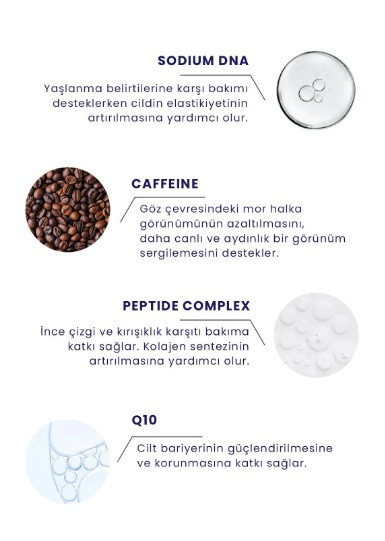 کرم چشم DNA پروکسین، یک محصول مراقبت از پوست است که با استفاده از ترکیبی از مواد طبیعی و فعال، به بهبود ظاهر و سلامت پوست اطراف چشم کمک می کند.. کرم چشم DNA پروسین، با فرمولاسیون ویژه خود، به سرعت جذب پوست می شود و ایجاد احساس سنگینی یا چربی نمی کند. این محصول حاوی مواد موثری از جمله: DNA: این ماده، یک ماده طبیعی است که به افزایش استحکام و خاصیت ارتجاعی پوست کمک می کند. Peptit Complex: این ماده، به کاهش چین و چروک و خطوط ریز کمک می کند. C Vitamini: این ماده، به روشن شدن و یکدست شدن رنگ پوست کمک می کند. Kafein: این ماده، به کاهش پف و سیاهی دور چشم کمک می کند. Q10: این ماده، به محافظت از پوست اطراف چشم در برابر عوامل محیطی کمک می کند. روغن آووکادو: این روغن، به آبرسانی پوست کمک می کند. هیالورونیک اسید: این ماده، به آبرسانی عمقی پوست کمک می کند. اسکوالان: این ماده، به حفظ رطوبت پوست کمک می کند. کرم چشم DNA پروسین، یک محصول مناسب برای استفاده روزانه است و می تواند به شما کمک کند تا پوستی جوان و شاداب در اطراف چشم داشته باشید. این یک کرم مراقبت ویژه برای ناحیه چشم است که برای افزایش سطح ارتجاعی ناحیه چشم و کاهش ظاهر چین و چروک به لطف مولکول DNA موجود در آن و همچنین برای کمک به مراقبت از کیسه های زیر چشم ساخته شده است. با محتوای کمپلکس پپتیدی و ظاهر حلقه های تیره با پشتیبانی از ویتامین C و کافئین. در حالی که مکمل Q10 به محافظت از پوست در برابر عوامل خارجی کمک میکند، ویتامین C برای روشنتر و یکنواختتر شدن رنگ پوست و کافئین برای ایجاد خطوط چشمی محکمتر و بانشاطتر هدف قرار میگیرد. هدف آن حفظ سطح رطوبت طبیعی مورد نیاز ناحیه چشم با دانه انار، هسته انگور، کره شی، روغن آووکادو و همچنین اسید هیالورونیک و اسکوالان است. کرم چشم DNA پروسین، یک محصول موثر و ایمن است که می تواند به شما کمک کند تا پوستی جوان و شاداب در اطراف چشم داشته باشید. این محصول با استفاده از ترکیبی از مواد طبیعی و فعال، به کاهش چین و چروک و خطوط ریز، روشن شدن و یکدست شدن رنگ پوست، کاهش پف و سیاهی دور چشم، افزایش استحکام و خاصیت ارتجاعی پوست و محافظت از پوست اطراف چشم در برابر عوامل محیطی کمک می کند.